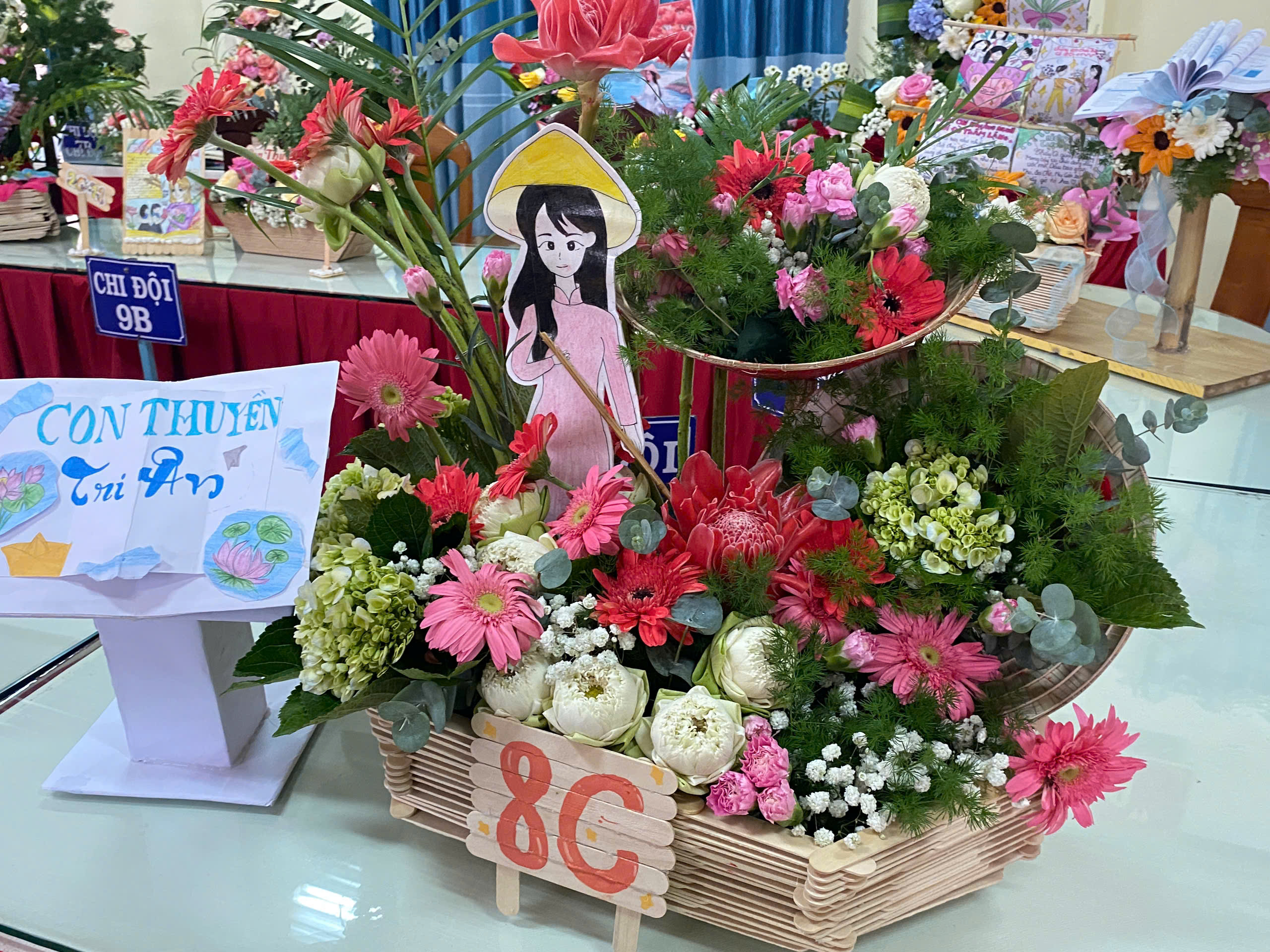 Cuộc thi đã thu hút sự tham gia nhiệt tình của 12 Chi đội, mỗi đội gồm 5 học sinh đại diện cho tập thể lớp. Trong khoảng thời gian quy định, các em đã thể hiện sự khéo léo, óc thẩm mỹ và tinh thần làm việc nhóm tuyệt vời để tạo nên những tác phẩm hoa nghệ thuật độc đáo.