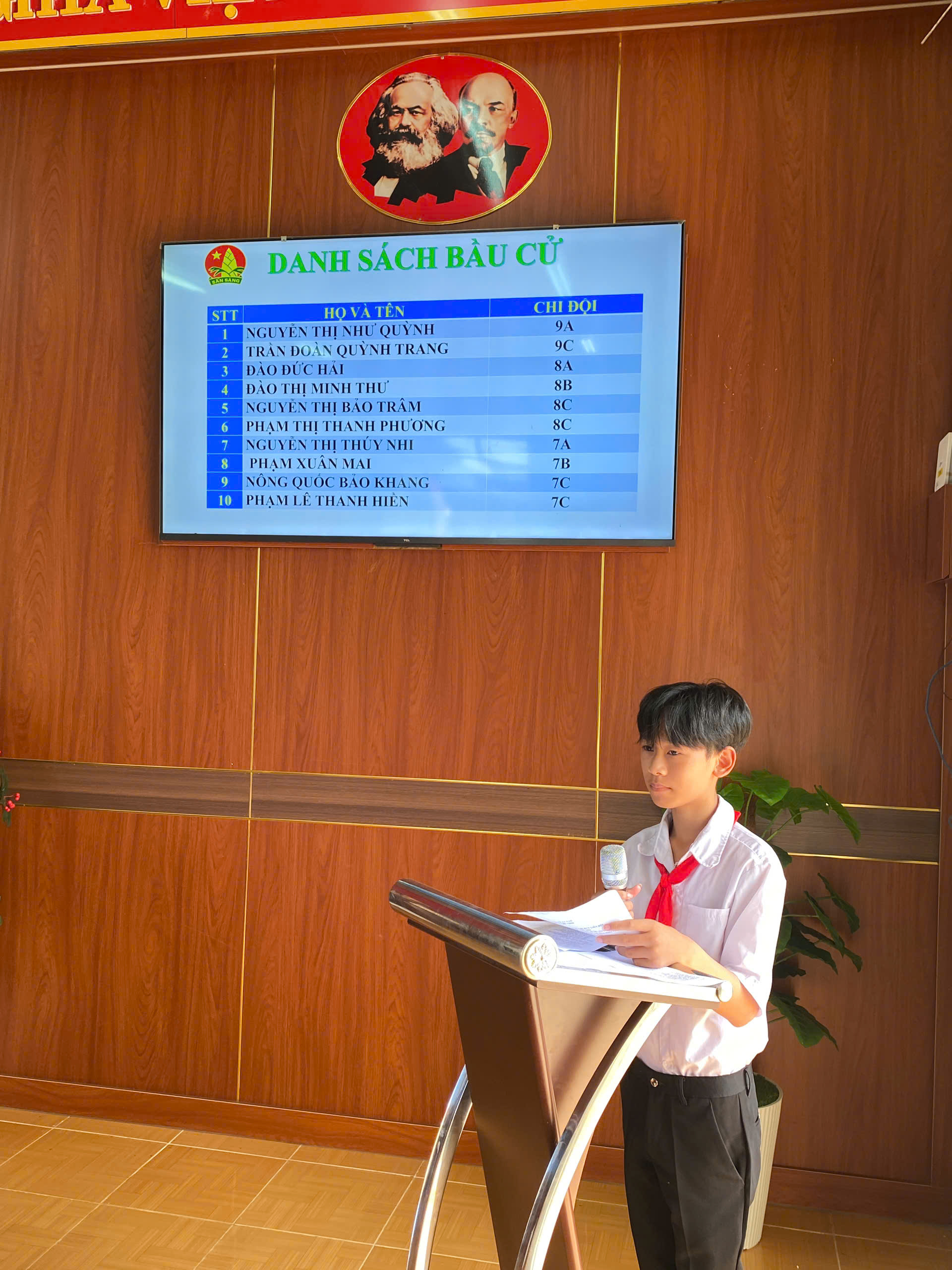 Với tinh thần dân chủ và đoàn kết cao, Đại hội đã bầu ra Ban Chỉ huy Liên đội nhiệm kỳ 2025 – 2026. Em Nguyễn Thị Như Quỳnh – học sinh lớp 9A được tín nhiệm giữ chức vụ Liên đội trưởng.