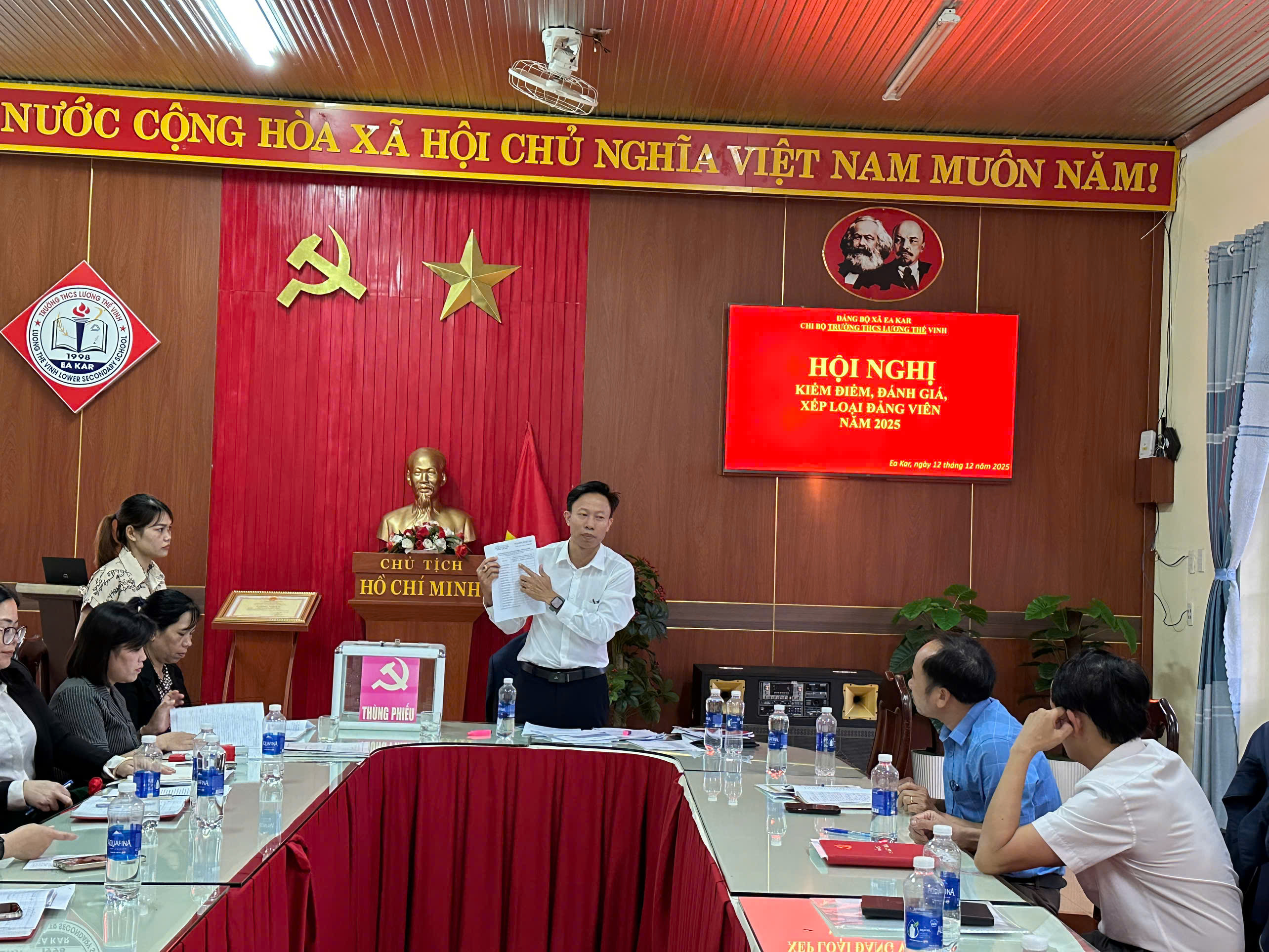 Thực hiện Kế hoạch công tác năm 2025 và Hướng dẫn của cấp trên về việc kiểm điểm, đánh giá, xếp loại chất lượng đối với tổ chức cơ sở đảng và đảng viên, vào lúc 14 giờ 00 phút, ngày 12 tháng 12 năm 2025, Chi bộ Trường THCS Lương Thế Vinh đã trang trọng tổ chức Hội nghị kiểm điểm, đánh giá, xếp loại đảng viên năm 2025 tại Văn phòng nhà trường. Đây là hoạt động thường niên có ý nghĩa quan trọng nhằm nhìn nhận lại toàn bộ quá trình lãnh đạo, chỉ đạo và kết quả thực hiện nhiệm vụ của Chi bộ và từng đảng viên trong suốt một năm.