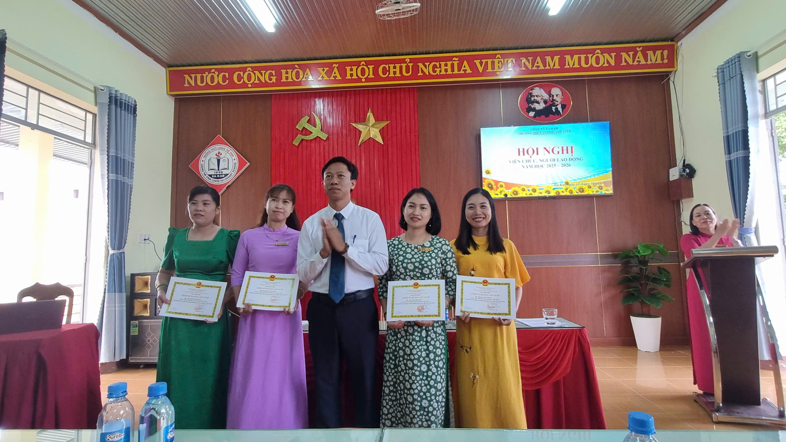 Dự và chỉ đạo Hội nghị có đồng chí Nguyễn Tiến Thương – Bí thư Chi bộ, Hiệu trưởng nhà trường; cô Hồ Thị Thanh Tâm – Phó Hiệu trưởng; cùng toàn thể cán bộ, giáo viên và nhân viên trong nhà trường.