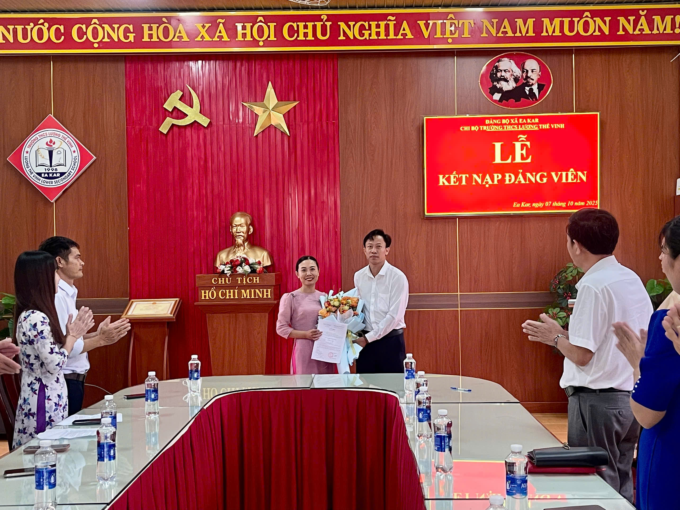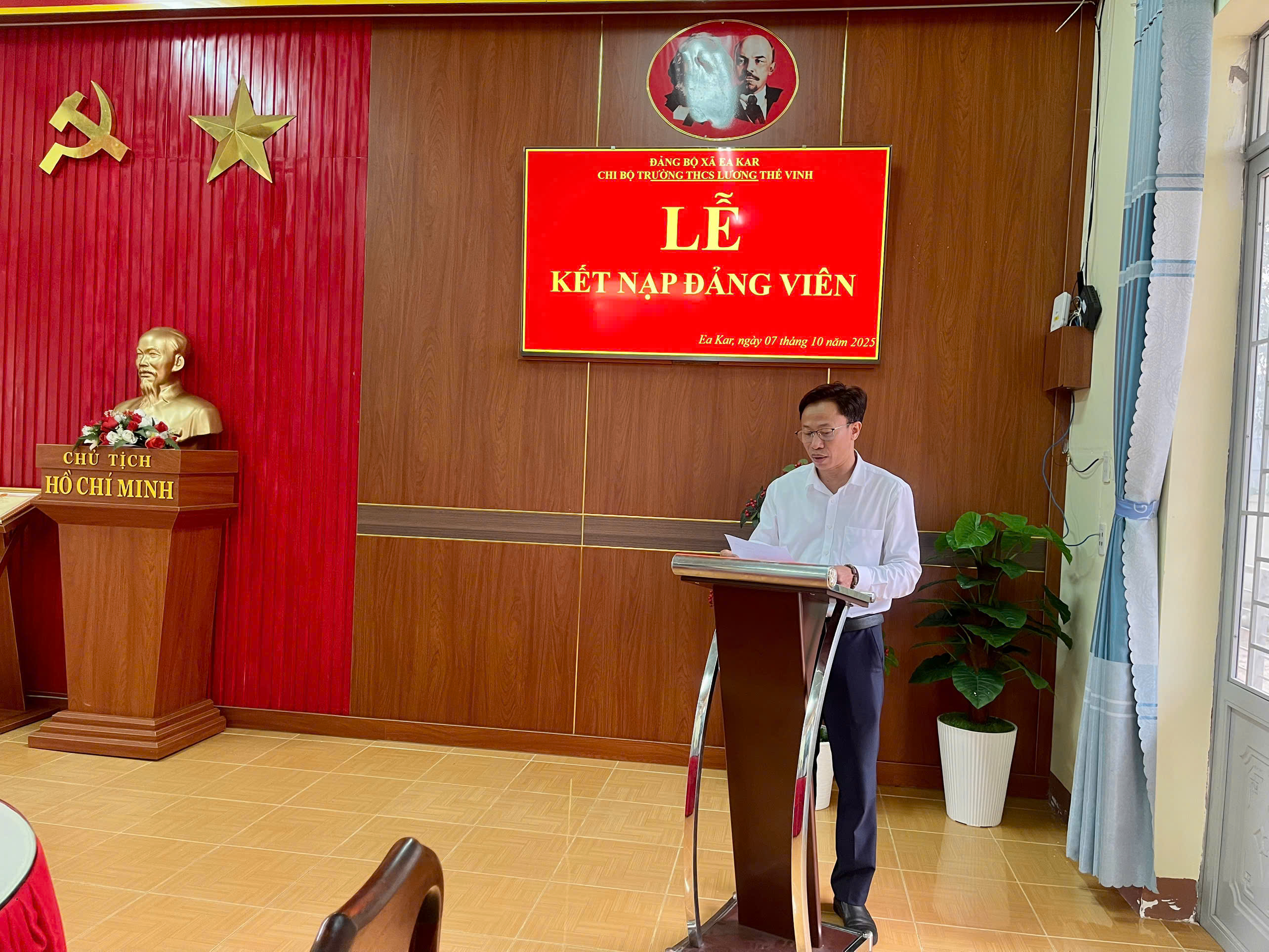 Tại buổi lễ, đồng chí Nguyễn Tiến Thương đã công bố Quyết định kết nạp Đảng của Ban Thường vụ Huyện ủy Ea Kar cho hai đồng chí. Trong không khí trang nghiêm, hai đảng viên mới đã đứng trước cờ Tổ quốc, cờ Đảng và chân dung Chủ tịch Hồ Chí Minh, đọc lời tuyên thệ, thể hiện quyết tâm trung thành với lý tưởng của Đảng, không ngừng học tập và rèn luyện để xứng đáng với danh hiệu người đảng viên Đảng Cộng sản Việt Nam.