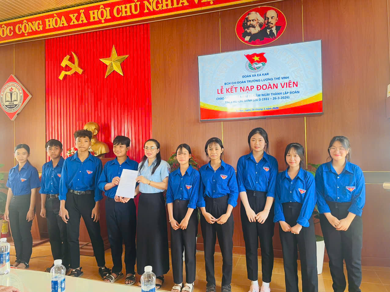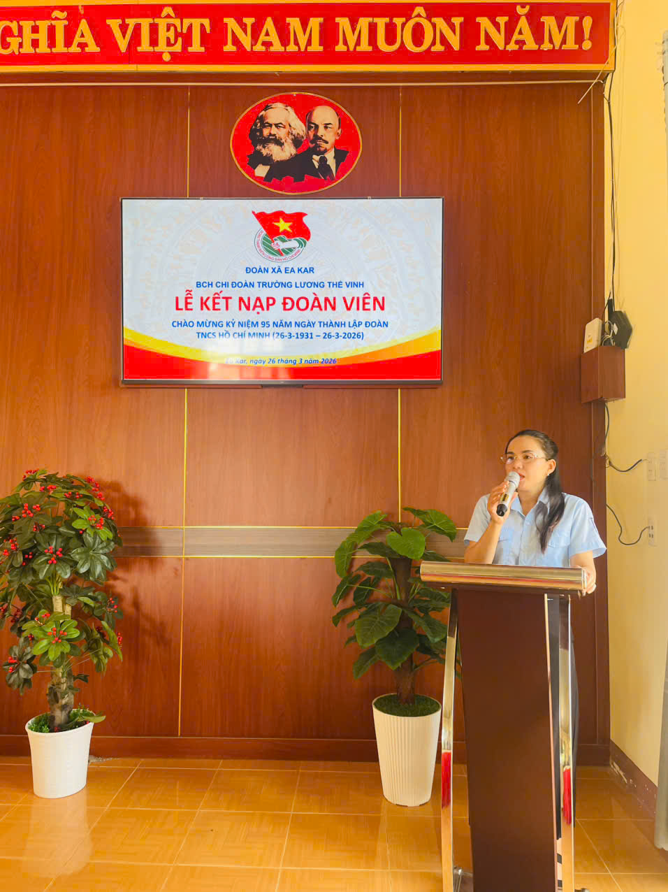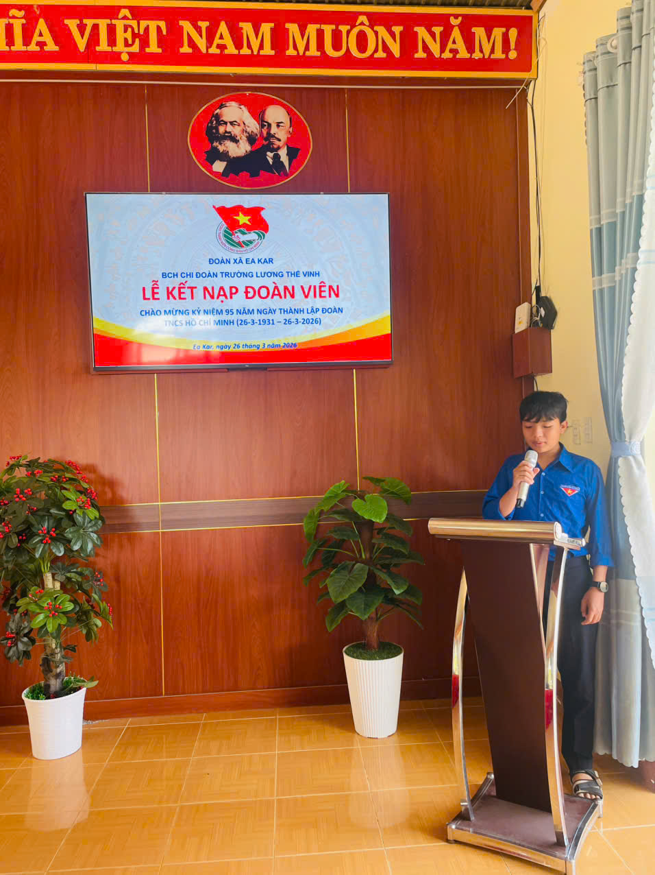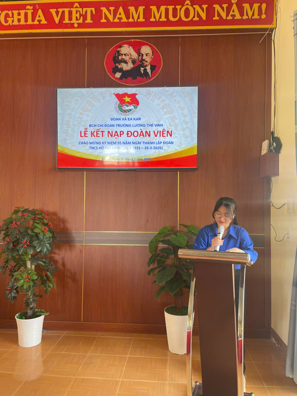 “Đoàn quân Việt Nam đi, chung lòng cứu quốc…” – Giai điệu tự hào ấy đã vang lên đầy trang nghiêm trong buổi chiều ngày 26/3/2026 tại văn phòng trường THCS Lương Thế Vinh. Trong không khí hào hùng của kỷ niệm 95 năm ngày thành lập Đoàn TNCS Hồ Chí Minh, nhà trường đã long trọng tổ chức Lễ kết nạp Đoàn viên mới cho 32 thanh niên ưu tú.