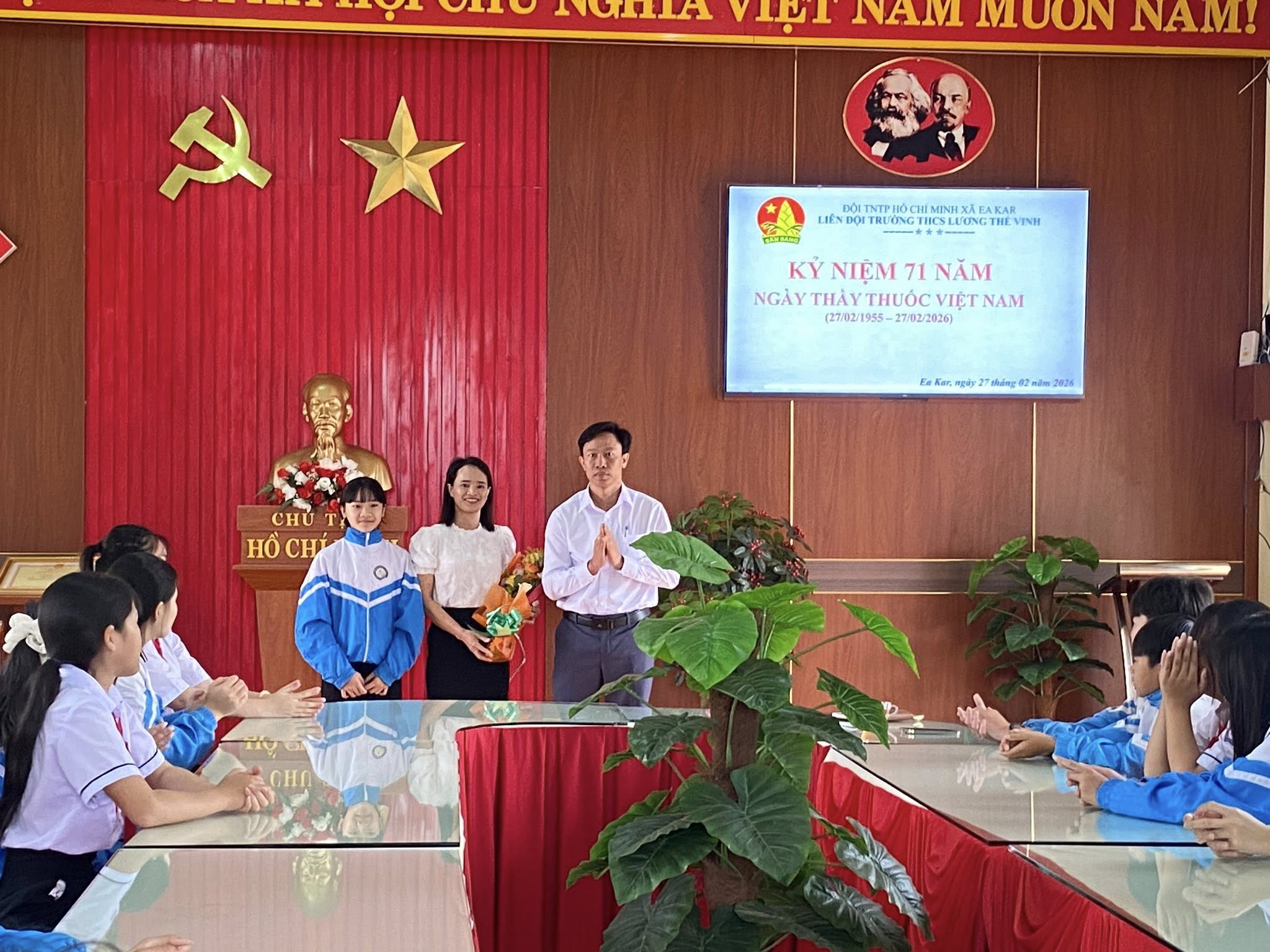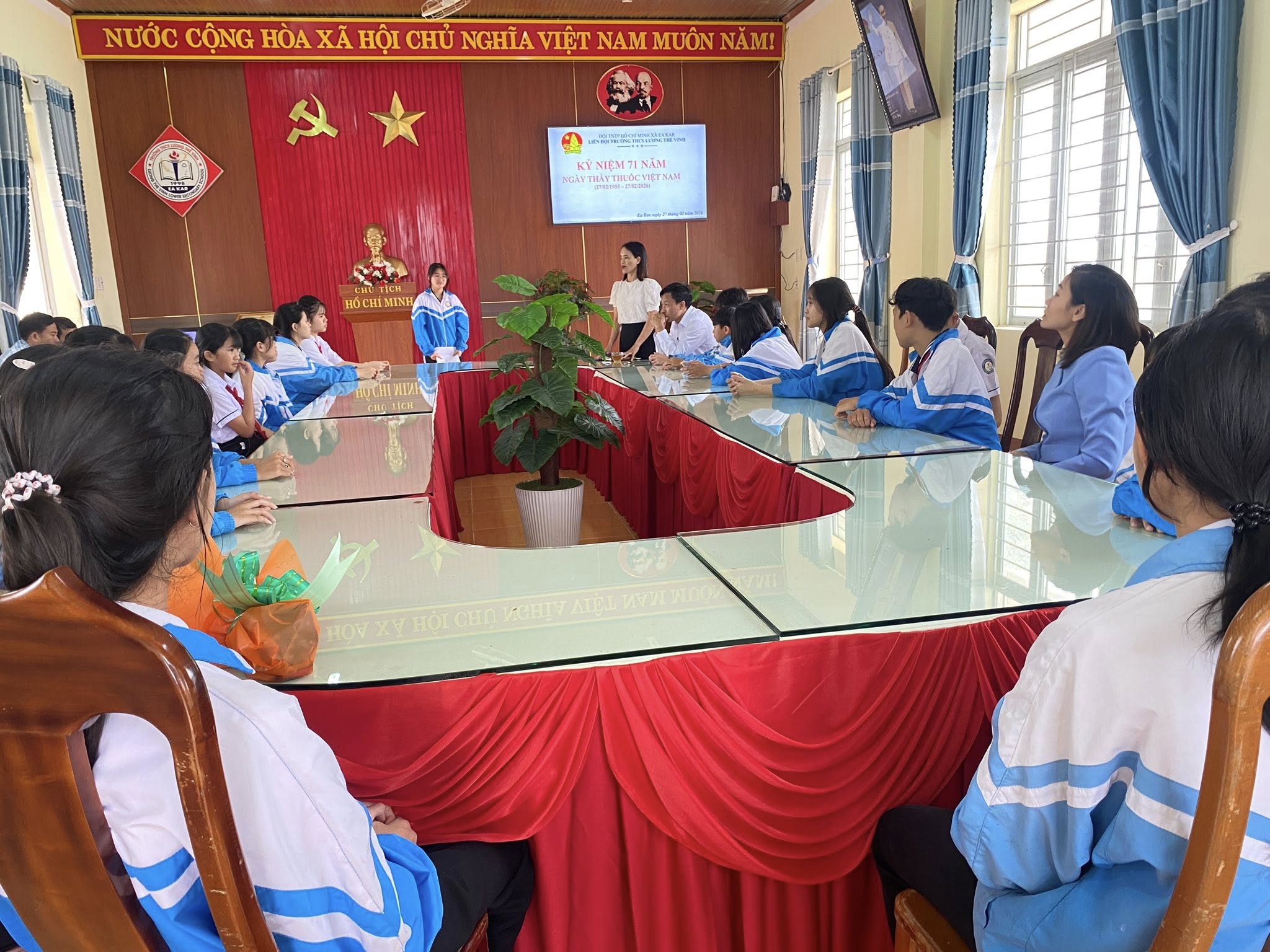 Trong nhịp sống hối hả của công tác giảng dạy và học tập, có những đóa hoa vẫn âm thầm tỏa hương, chăm sóc và bảo vệ sức khỏe cho thế hệ trẻ. Sáng ngày 27/02/2026, văn phòng trường THCS Lương Thế Vinh đã trở nên ấm áp lạ thường trong buổi gặp mặt kỷ niệm 71 năm Ngày Thầy thuốc Việt Nam (27/02/1955 – 27/02/2026) – một ngày để tri ân “Người chiến sĩ áo trắng” thầm lặng của nhà trường.