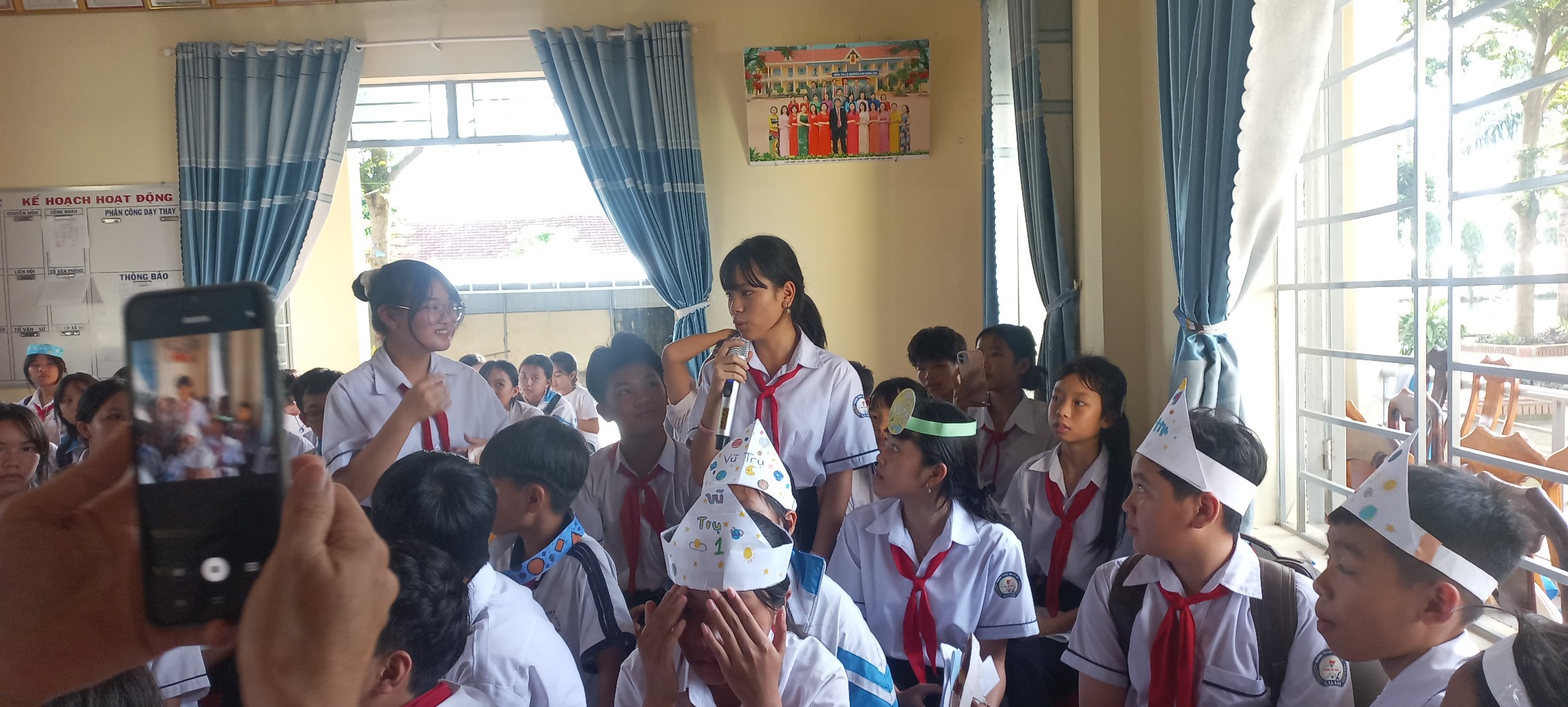 Mỗi đội cử ra 4 bạn để tham gia trò chơi, Những bạn còn lại sẽ cổ vũ cho nhóm mình. Các đội thi cùng nhau trả lời chuỗi câu hỏi nhanh, vừa mang tính kiến thức, vừa đòi hỏi phản xạ tư duy linh hoạt. Không khí thi đua rộn ràng, tiếng cổ vũ và những tràng pháo tay vang lên không ngớt.