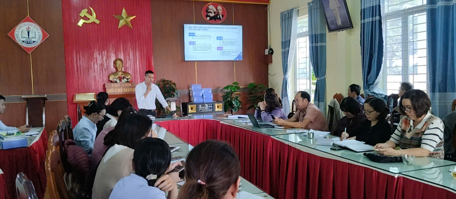 Nội dung tập huấn được trình bày bởi thầy Trần Đăng Cường. Thầy đã chuyển giao toàn bộ tinh thần và các hướng dẫn thực hiện từ tài liệu chính thức của Bộ Giáo dục và Đào tạo. Thầy Cường đã làm rõ Khung NLS Việt Nam là căn cứ pháp lý thống nhất, yêu cầu các thầy cô phải thống nhất nhận thức về NLS không chỉ là kỹ năng sử dụng máy tính, mà là khả năng vận dụng công nghệ để giải quyết vấn đề và học tập hiệu quả trong môi trường số.
