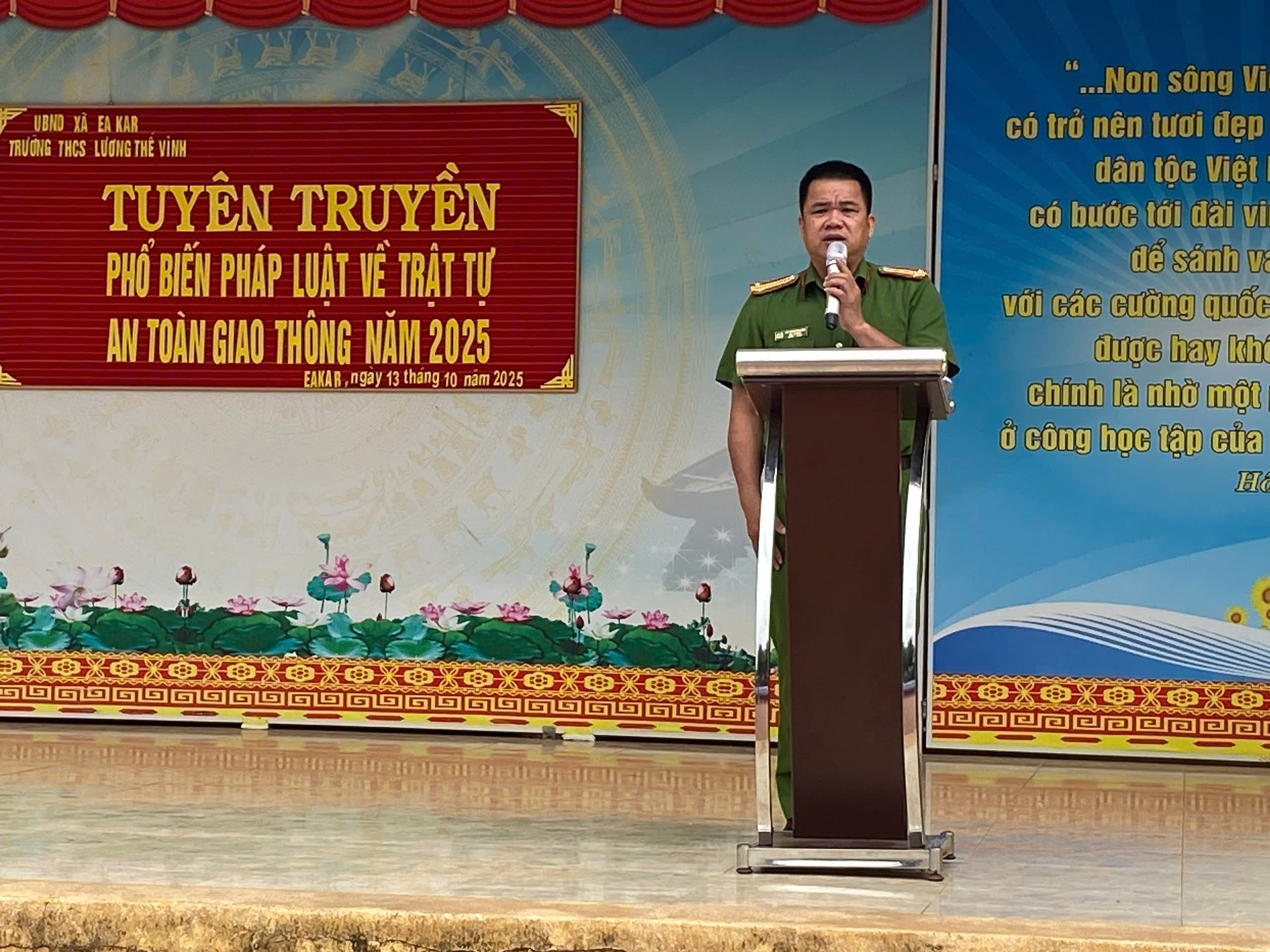 Ngày 13 tháng 10 năm 2025, Trường THCS Lương Thế Vinh phối hợp với Công an xã EaKar tổ chức buổi “Tuyên truyền, phổ biến pháp luật về an toàn giao thông năm 2025” cho toàn thể cán bộ, giáo viên và học sinh trong nhà trường.