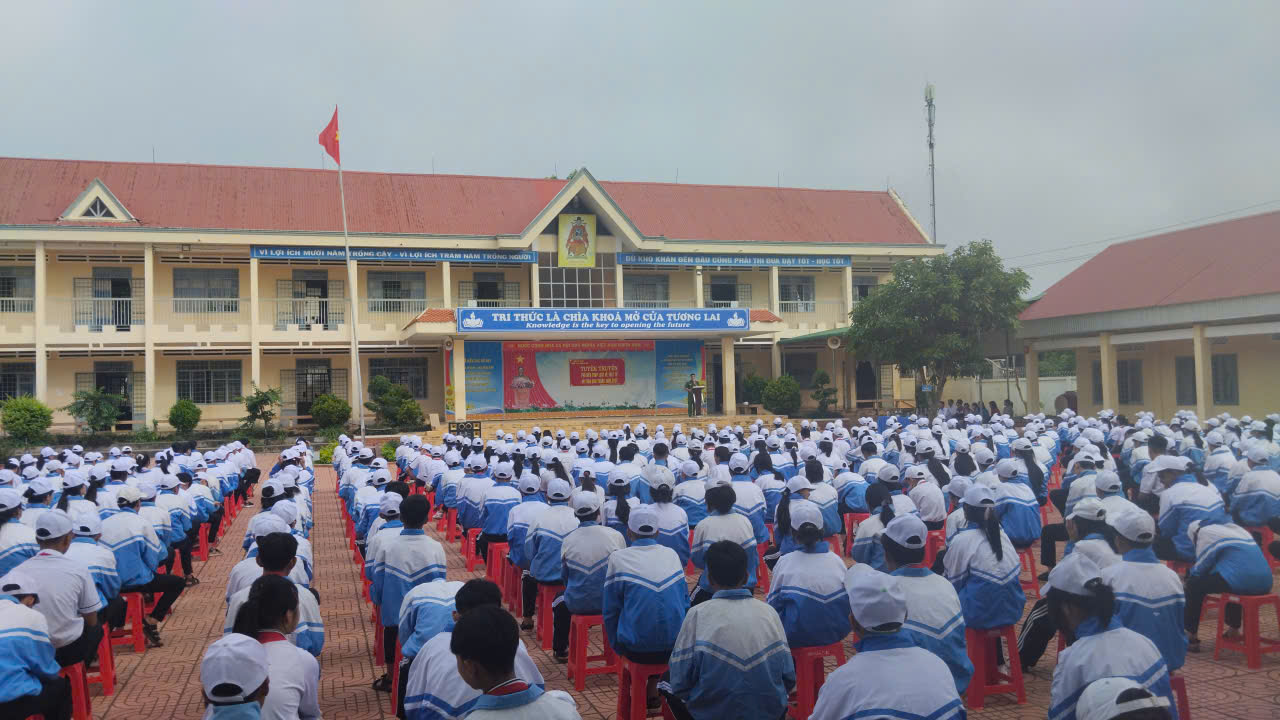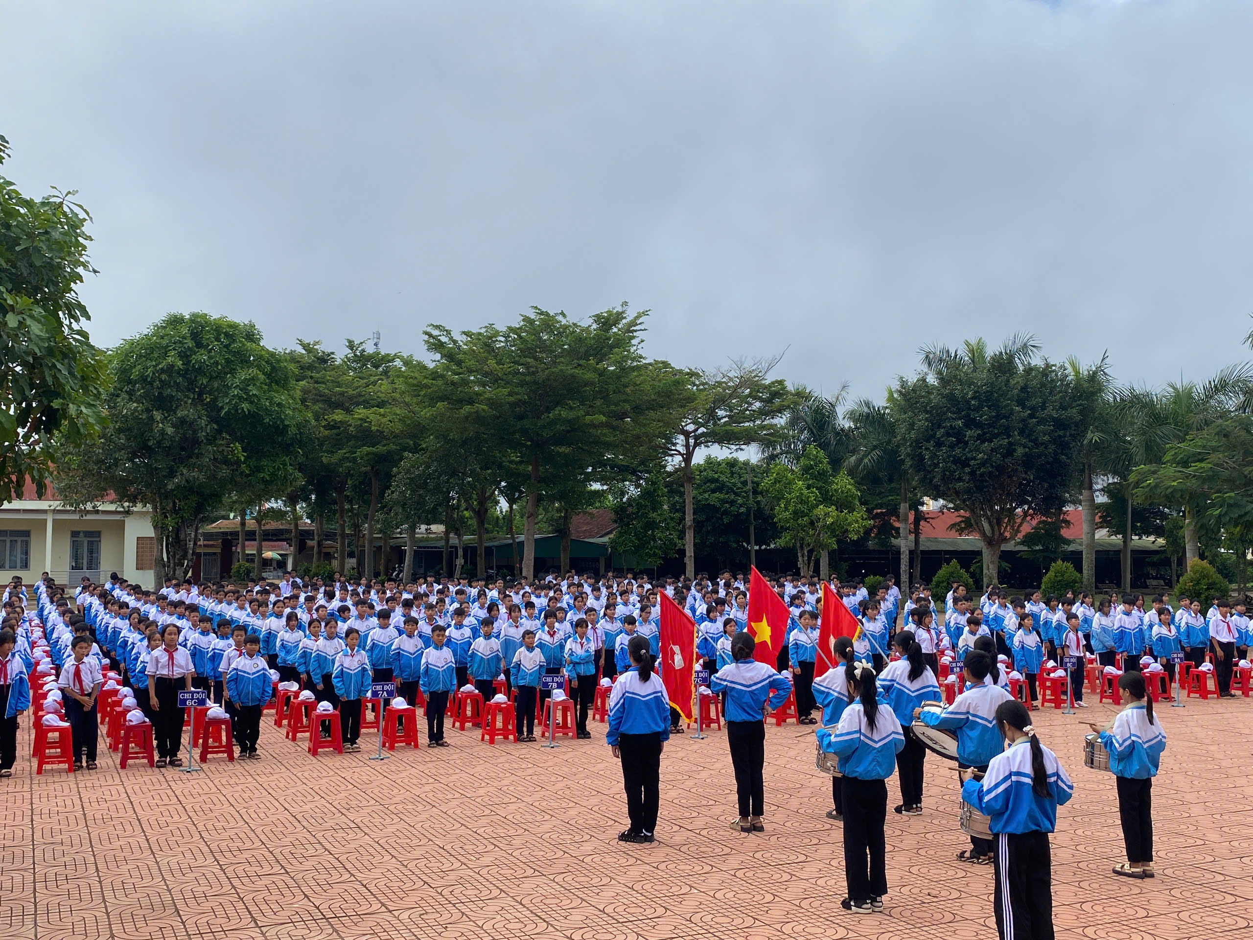 Tham dự buổi tuyên truyền có Ban Giám hiệu nhà trường, ông Đỗ Hoàng Khương – Đại diện Công an xã EaKar, cùng 12 thầy cô giáo chủ nhiệm và hơn 400 học sinh thuộc các khối lớp 6, 7, 8, 9 của trường.